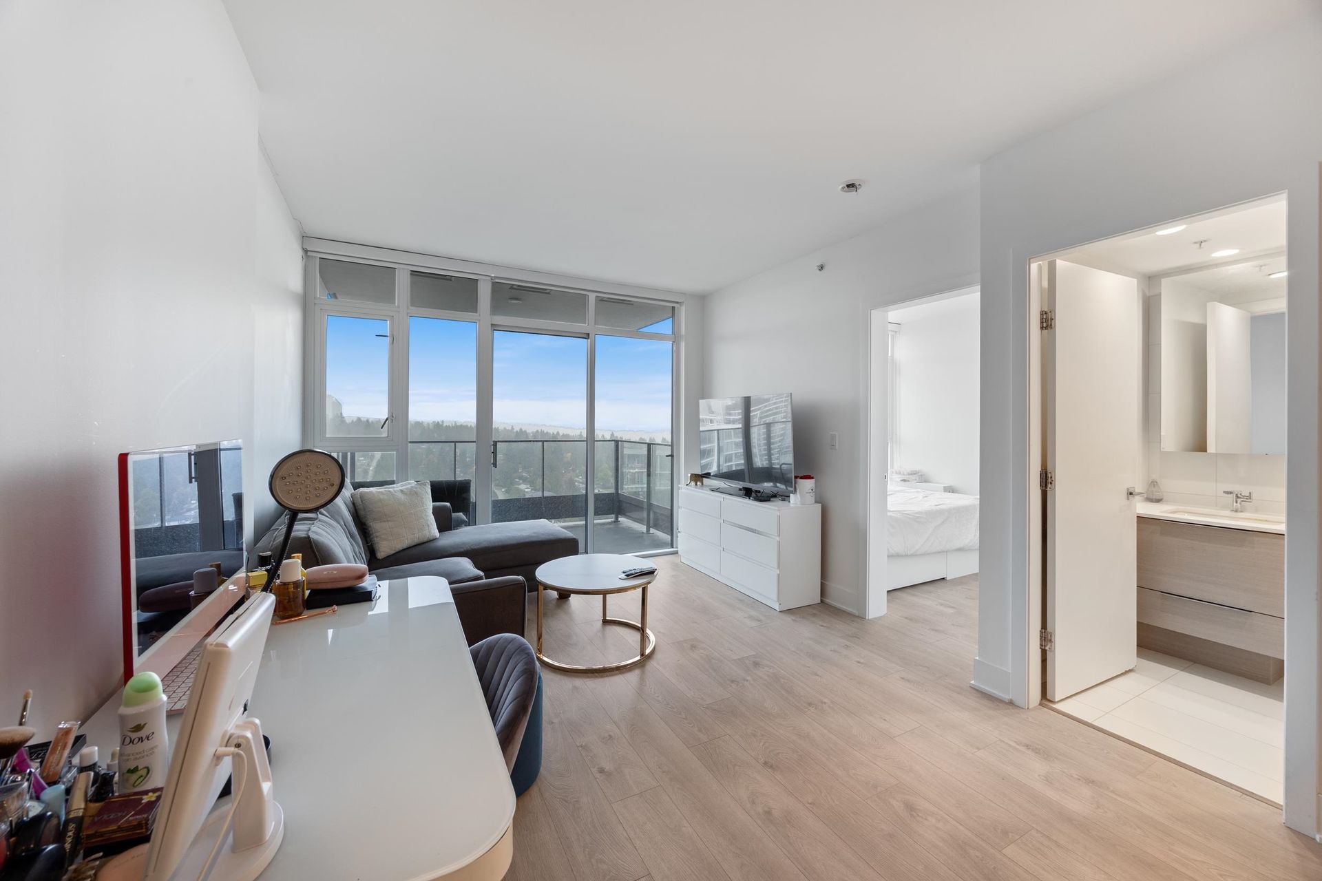 Experience breathtaking city and mountain views from this immaculate one-bedroom home at Hensley by Cressey. Designed for modern urban living, this bright, open-concept suite features floor-to-ceiling windows, high-end finishes, and heat pump air conditioning for year-round comfort. The sleek kitchen showcases integrated appliances, quartz countertops, and the renowned Cressey Kitchen™ design with abundant storage and workspace. The spacious bedroom provides a peaceful retreat with generous closet space. Comes with one secured parking stall and a storage locker. Enjoy world-class amenities including an outdoor pool, hot tub, steam room, fitness centre, rooftop lounge with panoramic views, social lounge, and concierge service. Ideally located near Lougheed Mall, Hannam Supermarket, SkyTrain