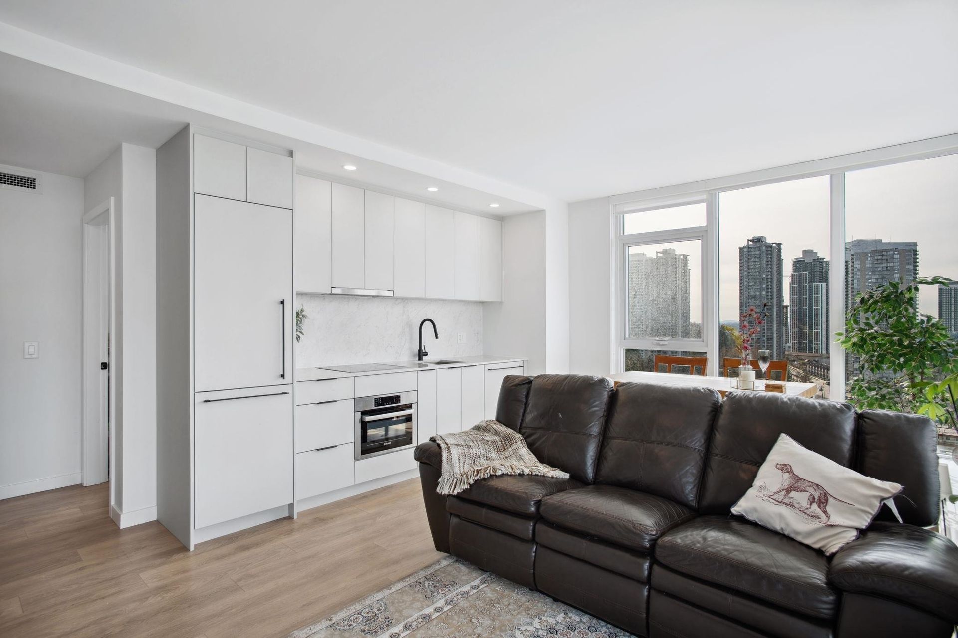 Georgetown One by Anthem – the flagship 30-story tower in Anthem’s visionary master-planned community at the heart of Surrey City Centre. Perfectly positioned within walking distance to top amenities, including shops, restaurants, Surrey Central SkyTrain Station, SFU & KPU campuses, the upcoming UBC campus, and several parks. Enjoy access to 30,000 sq. ft. of premium amenities, including an entertainment lounge, co-working space, outdoor theatre, dog run, fitness center, and guest suite. This bright and efficient southwest corner 2-bedroom home boasts a sleek linear kitchen outfitted with a 24” BOSCH and BLOMBERG appliance package. The spacious master bedroom extends onto a generous 158 sq. ft. outdoor balcony, perfect for soaking in the city views. 1 Parking (EV) 1 Locker